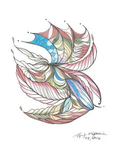 My Grammy taught me to take a space and draw a design in it. Her favorite thing to do with me was to put a large plate on a piece of drawing paper, and trace around it. Then she would take a smaller plate, put it inside the larger circle and trace around it. Now, the fun would begin. She would take one side, and I would take another, and we would sit and draw for a whole afternoon. Grammy had a hobby, she painted fine china and she was very good at it. She was also good at teaching me the value of white space to balance a picture. Just color till you smile and don’t second guess yourself.